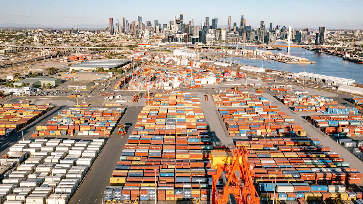 Swanson Dock, with a view of Melbourne in the background. (source: The Age)